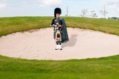 Bij verschillende activiteiten op de golfbaan zoals een golftoernooi of feest is een Schotse doedelzakspeler in originele outfit een must!Het volume is van dien aard dat het geluid over de hele golfbaan klinkt. Golf is van oorsprong een Schotse sport, de kleding en de klank van de doedelzak passen perfect bij de ambiance.